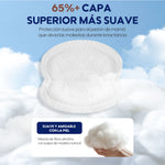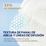 Absorbe la leche materna el doble de rápido y dispersa la humedad de manera uniforme, mejorando la sequedad en un 33%.