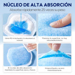 Absorbe hasta 25 veces su peso, reteniendo el líquido rápidamente para mantener la superficie seca y fresca.