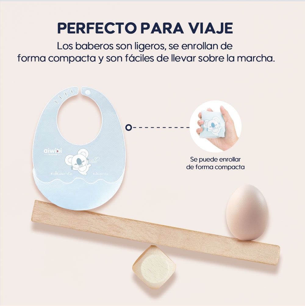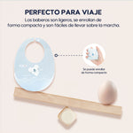 El babero es ultraligero y se enrolla fácilmente para guardarlo cómodamente en el estuche de viaje incluido.