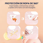 El babero ofrece protección impermeable y antimanchas, garantizando que la ropa de tu bebé se mantenga limpia y seca.